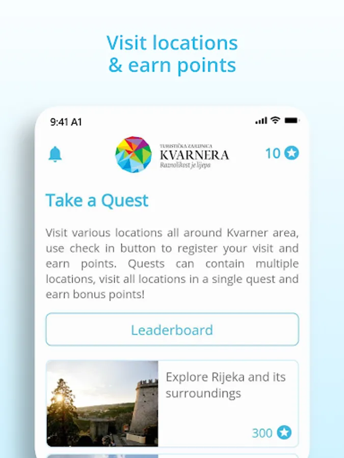 • Take a Quest - Getting to know the culture and heritage in a fun way with the unforgettable game Take a Quest! By coming to a certain location, solving difficult or easier challenges, collect points and Top 10 results win special badges.