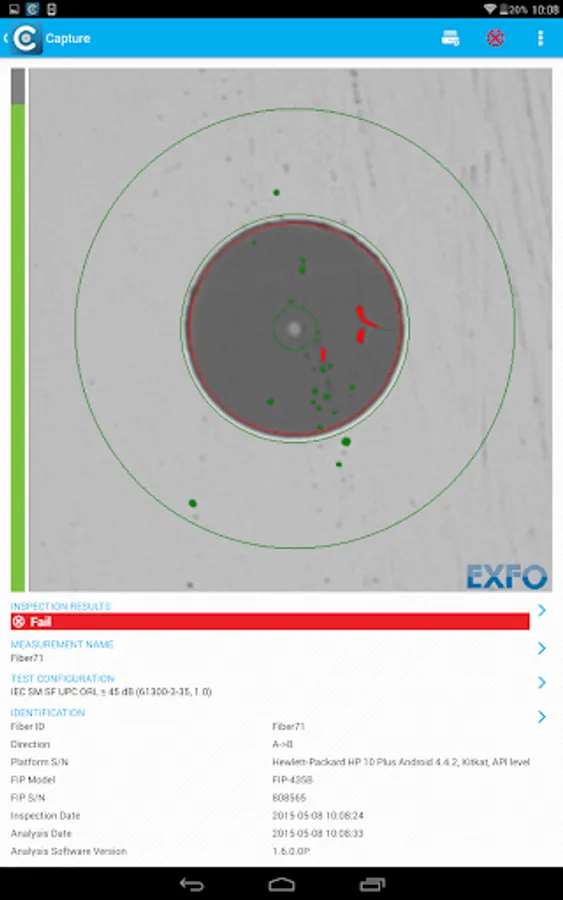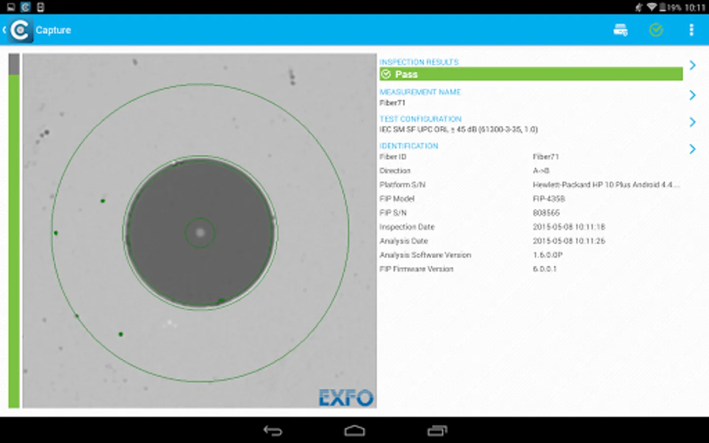 ConnectorMax is the perfect fiber connector certification application for smart devices. Paired with EXFO’s ConnectorMax fully automated wireless fiber inspection probes, this app provides an immediate and accurate health status of connector enfaces to efficiently pinpoint faulty elements impacting your network performance. And all this with unmatched user-experience.