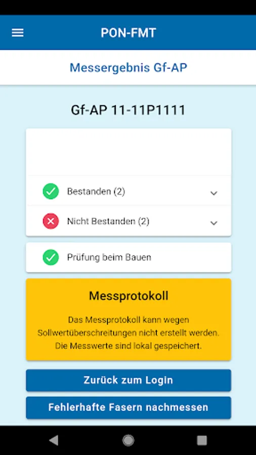 - The acceptance measurement takes place in the course of Gf - AP assembly. Immediately after the assembly of the Gf - AP is the same operation the PON-FMT is performed with a special level receiver.