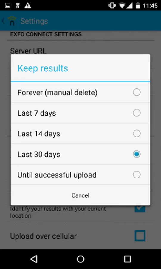 • Configurable test results deletion after a given number of days or successful upload