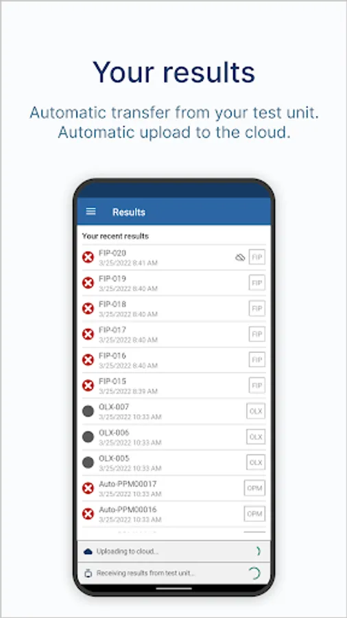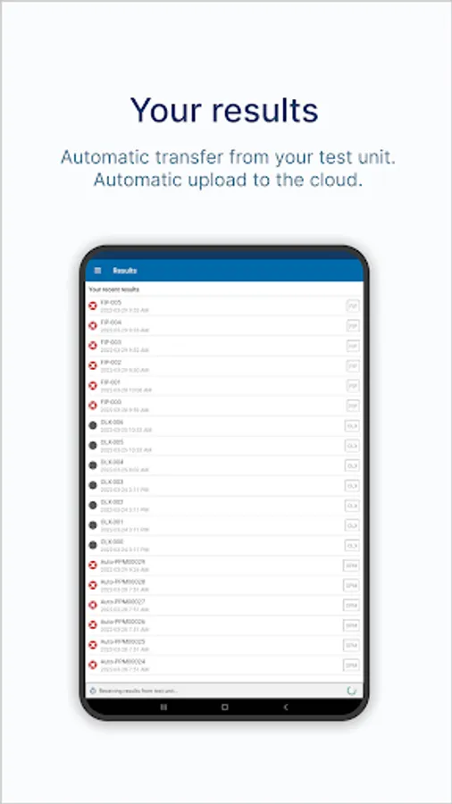 - Automatically transfer your results from your test unit to your cloud workspace (even if your mobile app is in background).