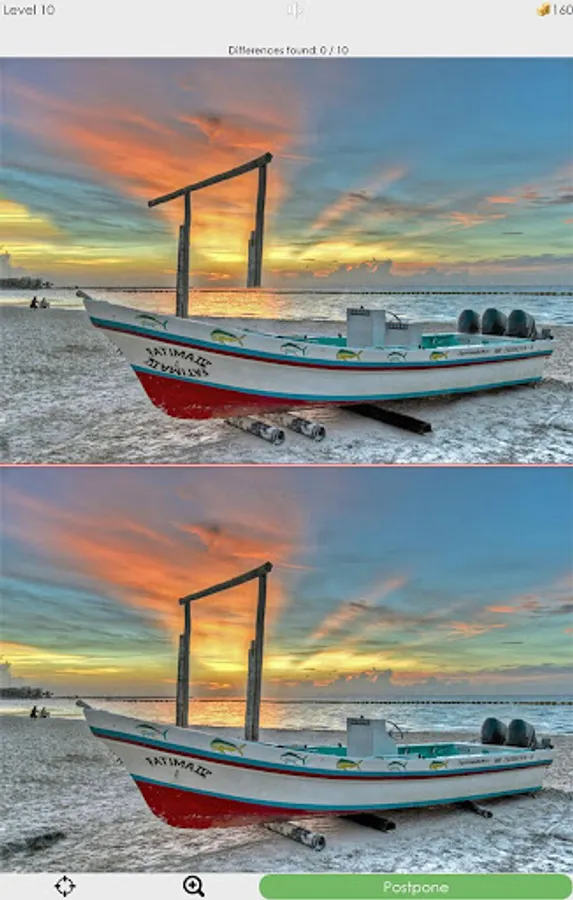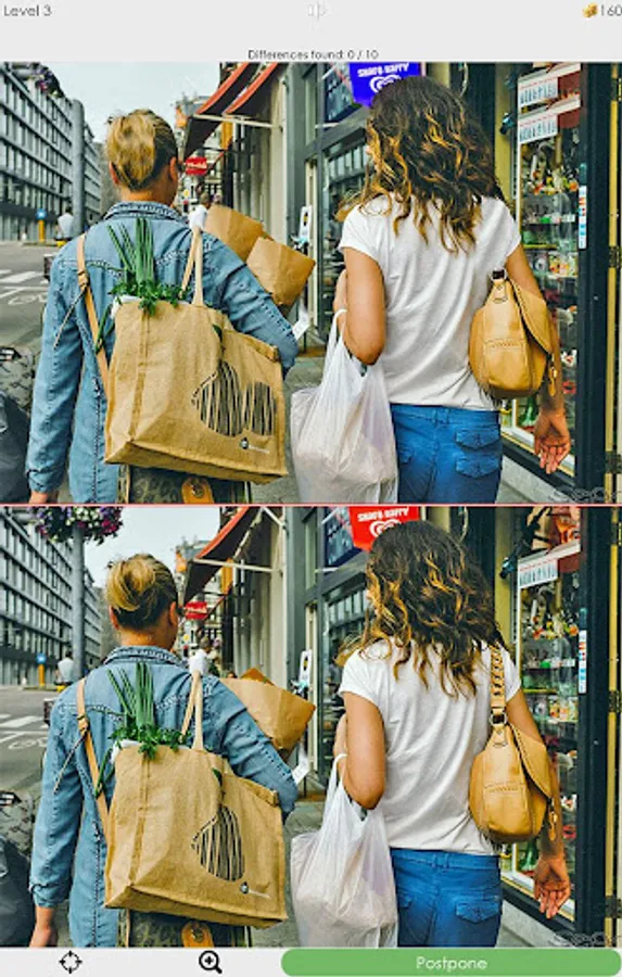 Look at two pictures and try to spot 10 differences - like a hidden objects, but instead of items you should find differences.