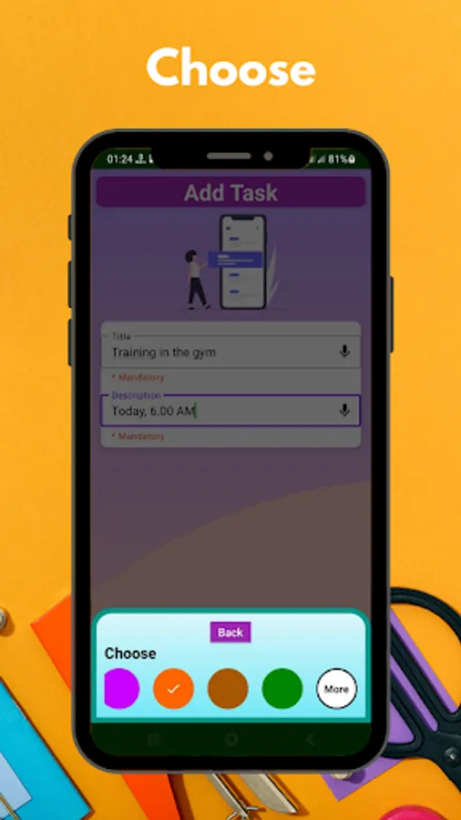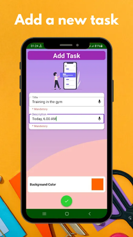 • Use your preferred colour to add a new tasks