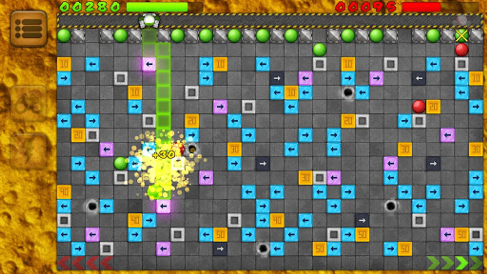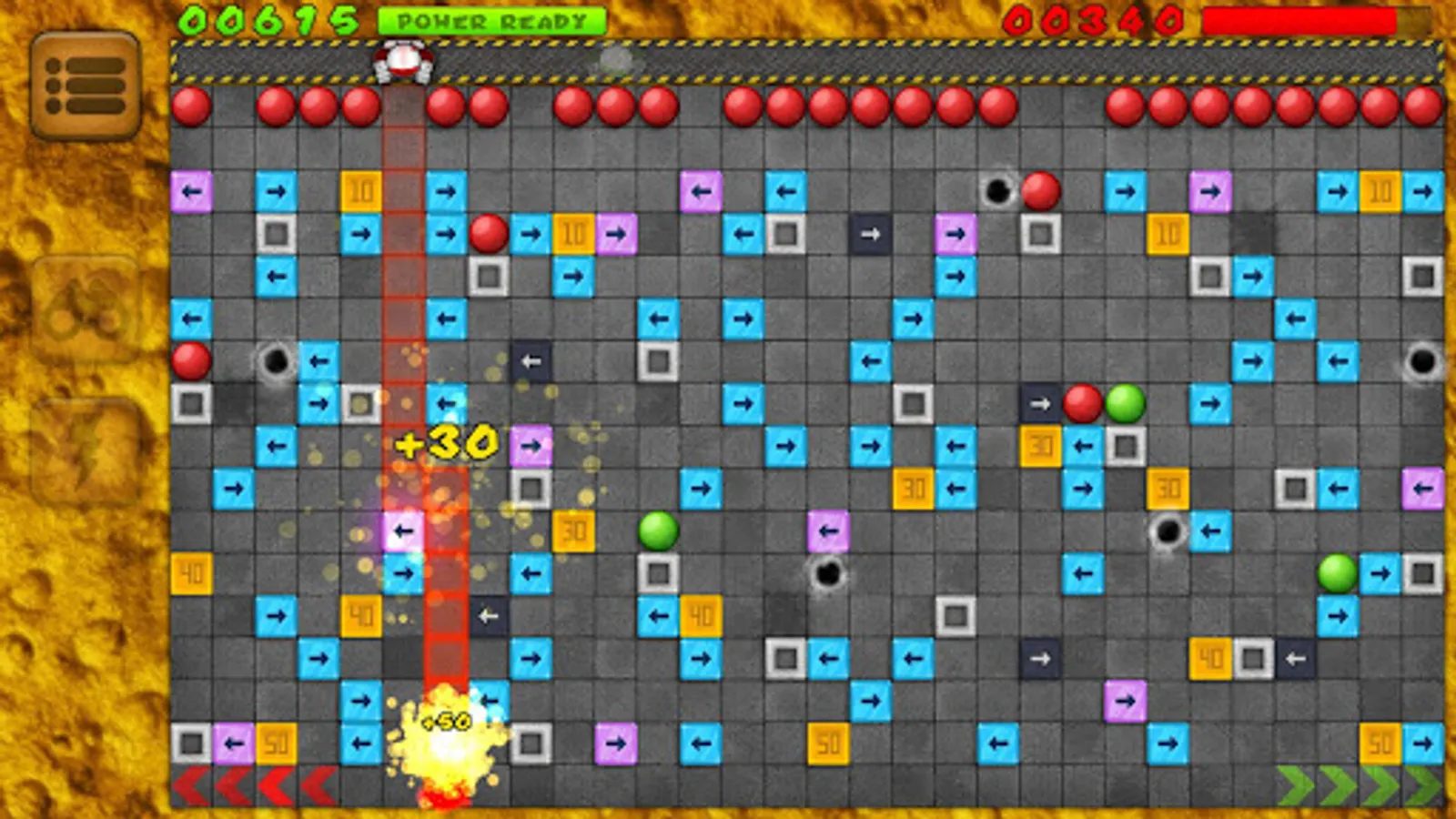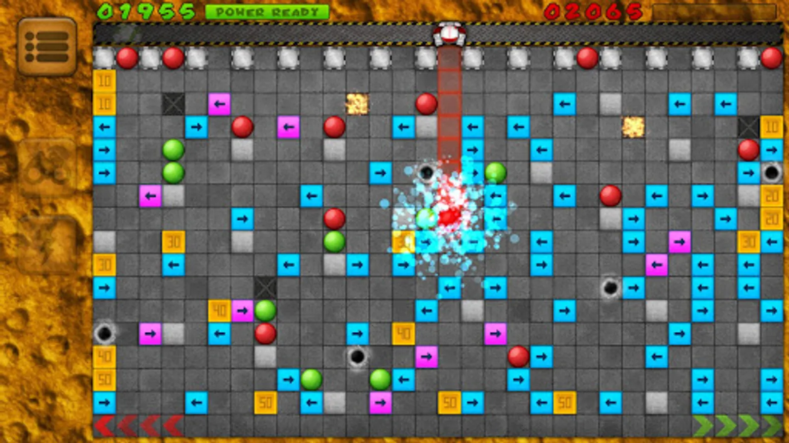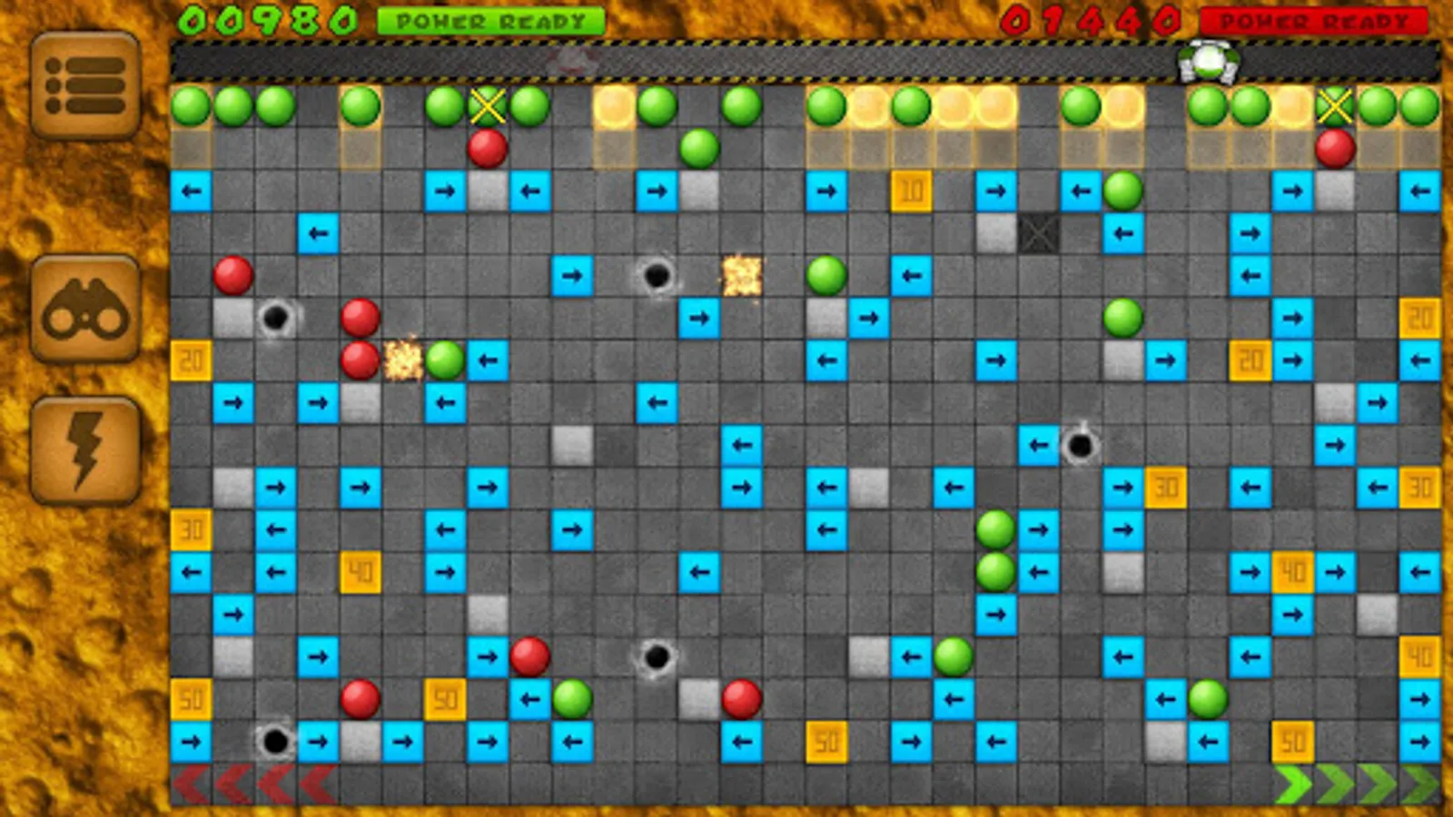 You can use various strategies in order to win. Think more than one move ahead in order to achieve the highest possible score. Use walls to your advantage as they are destroyed at the end of the round. Block your opponent by pushing your own balls into strategic positions to prevent such actions against you. Collect bonus score and accumulate Super-Power as the ball accelerated with the Super-Power will break the first obstacle in its path.