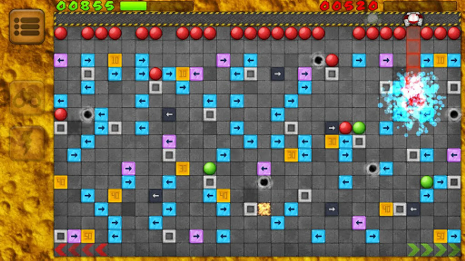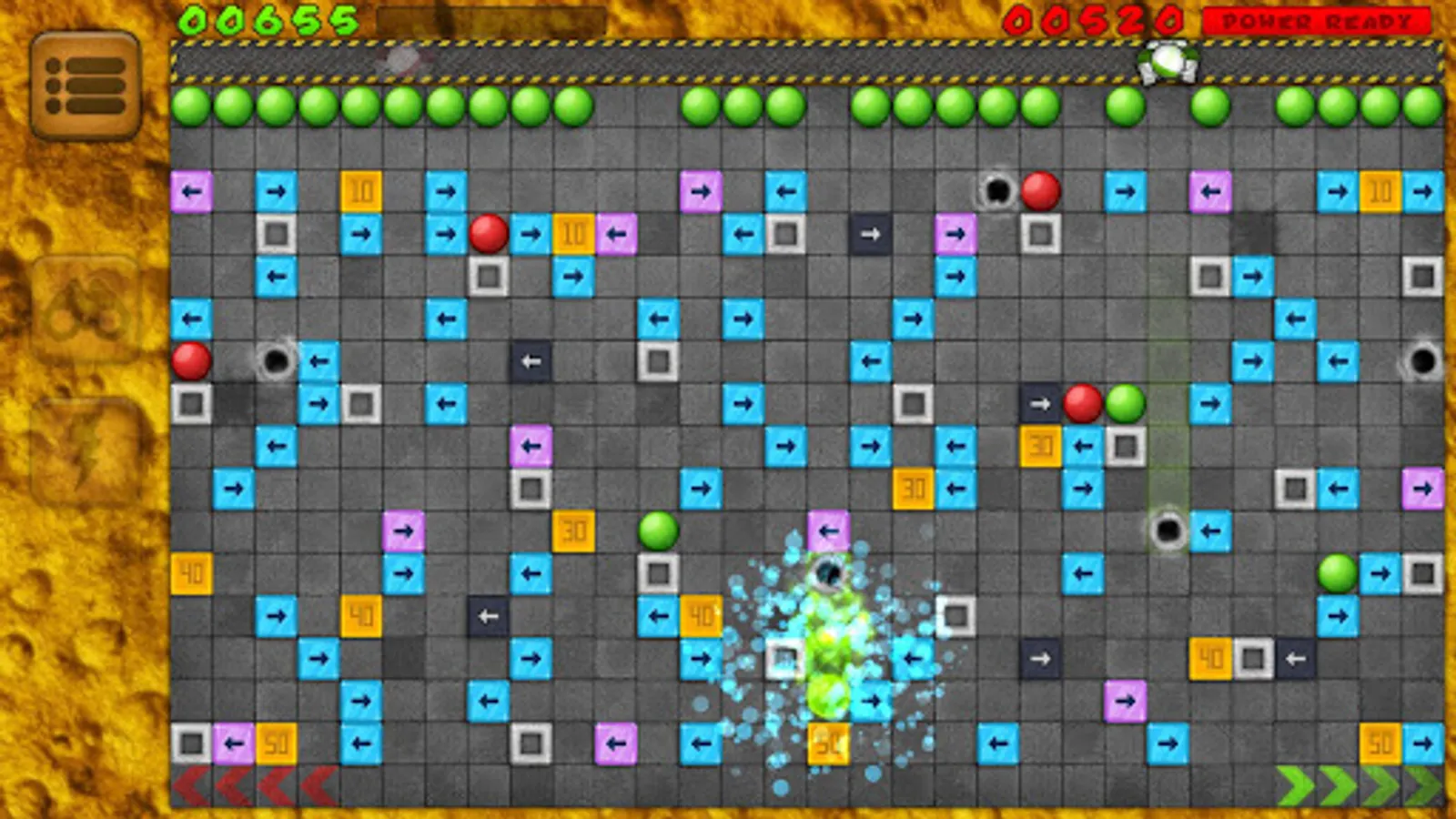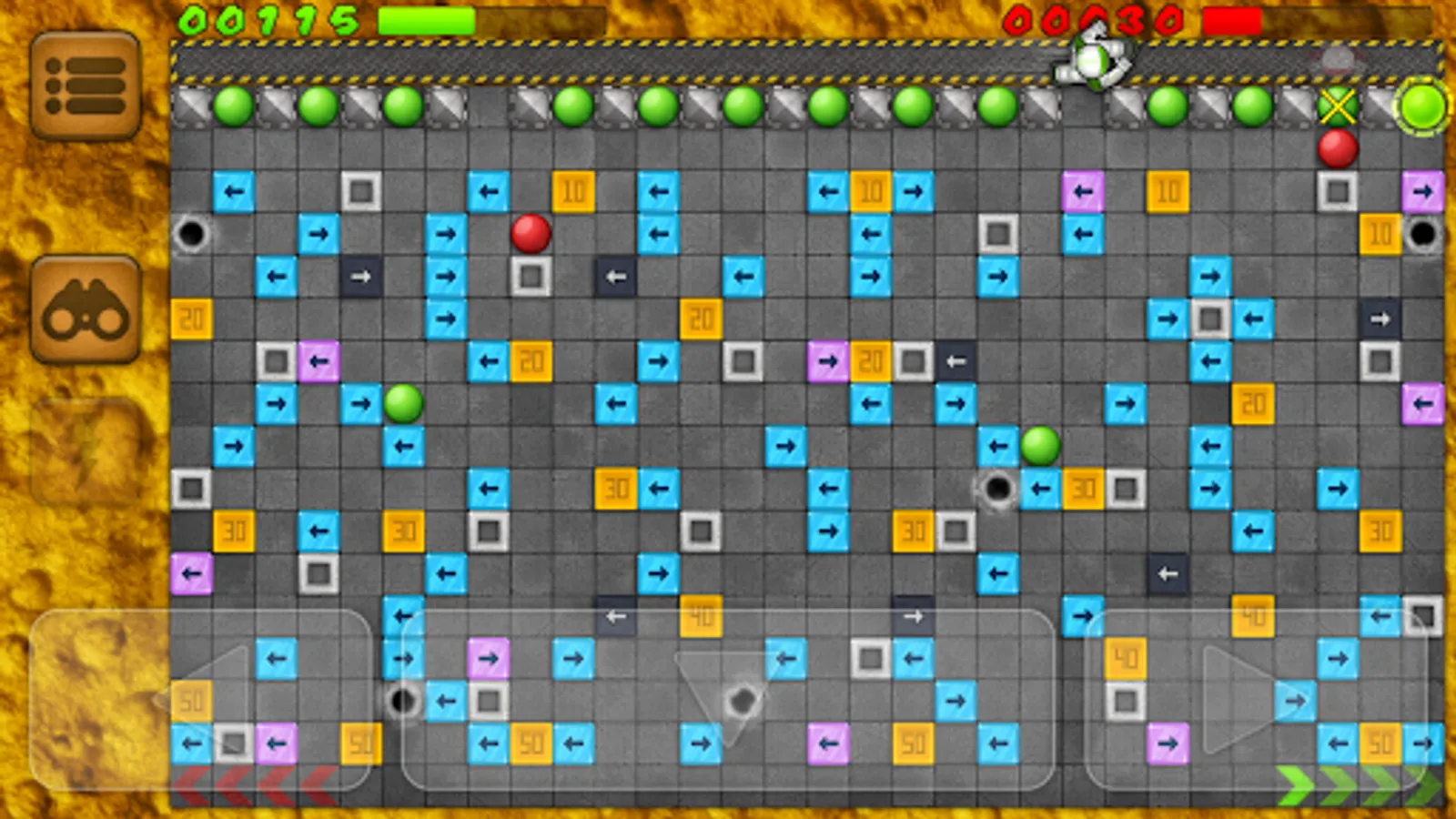 Your objective is to get your own balls to the bottom of a maze. Well, it's not as easy as it sounds. The levels are filled with obstacles: various arrow ramps, concrete walls and teleportation portals which will affect the movement direction of the ball.