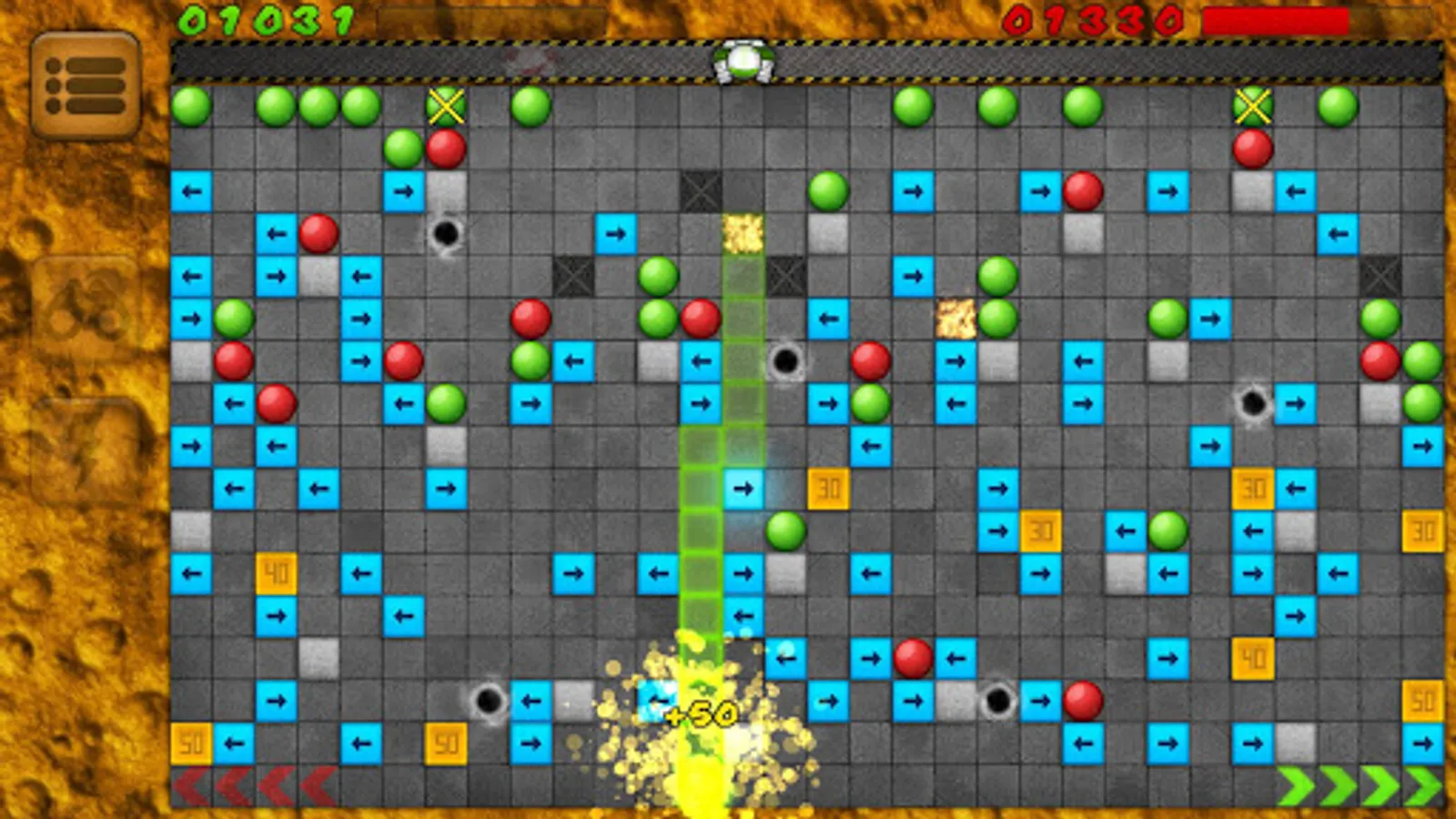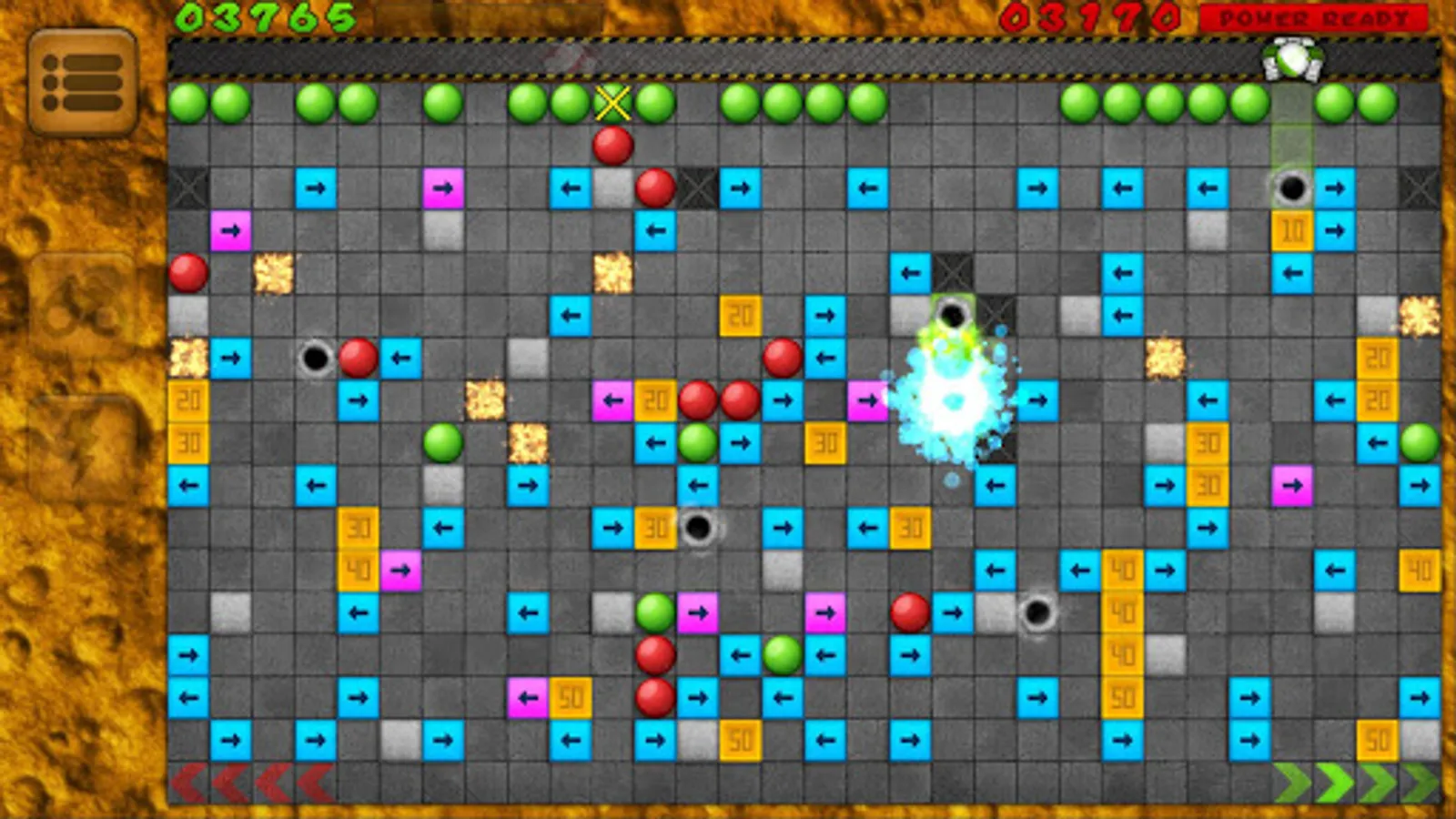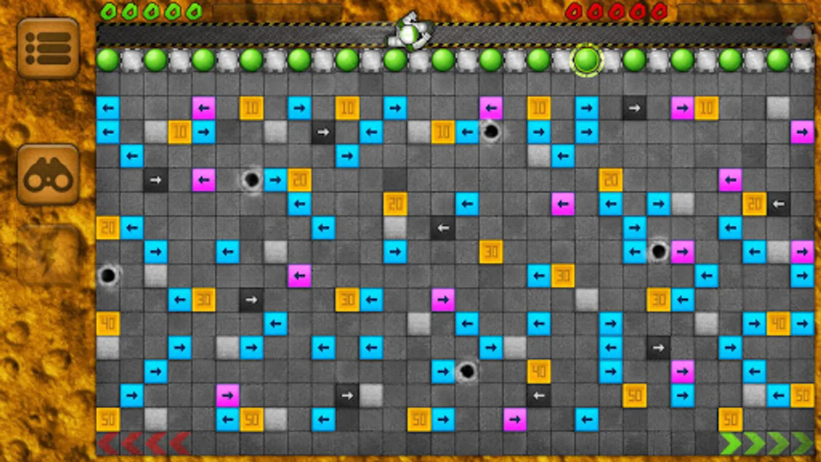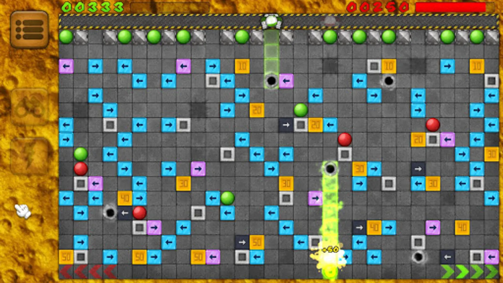 Your objective is to get your own balls to the bottom of a maze. Well, it's not as easy as it sounds. The levels are filled with obstacles: various arrow ramps, concrete walls and teleportation portals which will affect the movement direction of the ball.