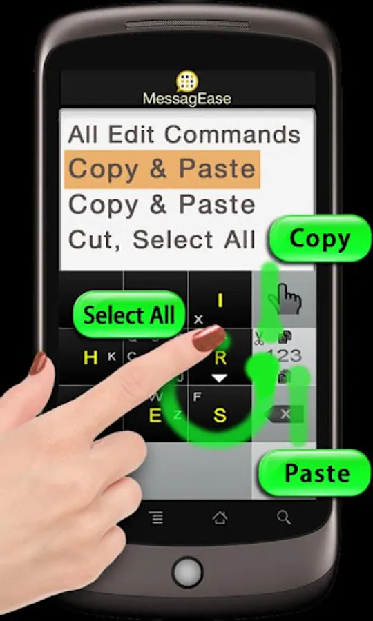 MessagEase's patented design is the result of many years of scientific research in the field of Computer-Human Interface (CHI). In addition to Android phones, MessagEase runs on the iPhone, Palm OS, Tablet PC (Windows), and Pocket PC.