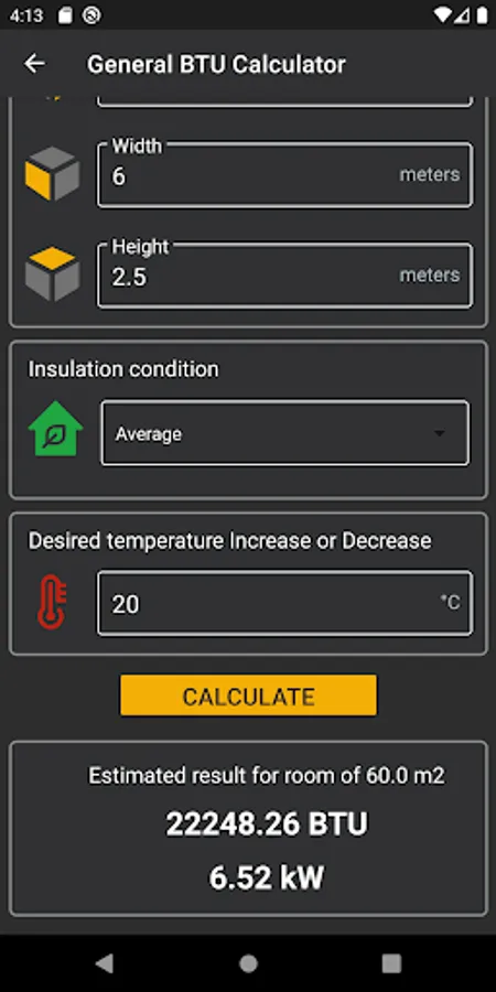 This application is a must for any plumber, builder or home DIY enthusiast, in fact anyone who wants to find out what radiator or AC BTU's are required for a particular room size.