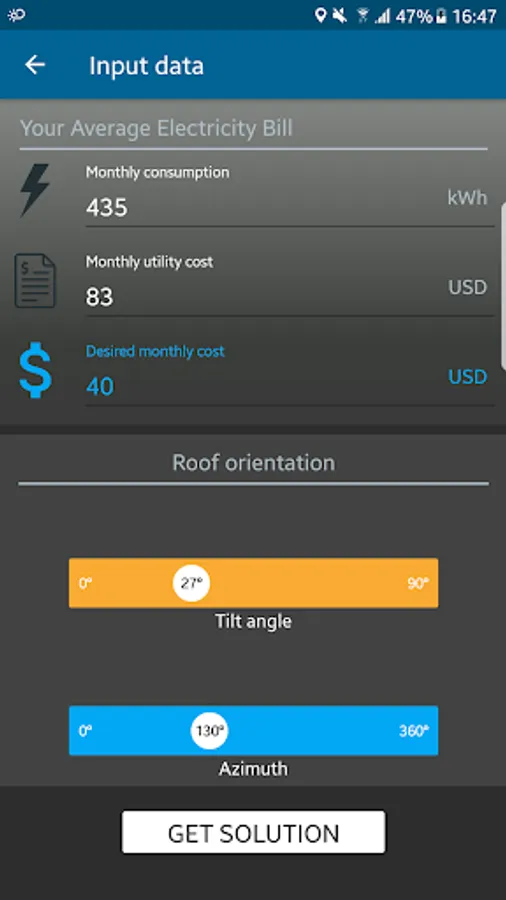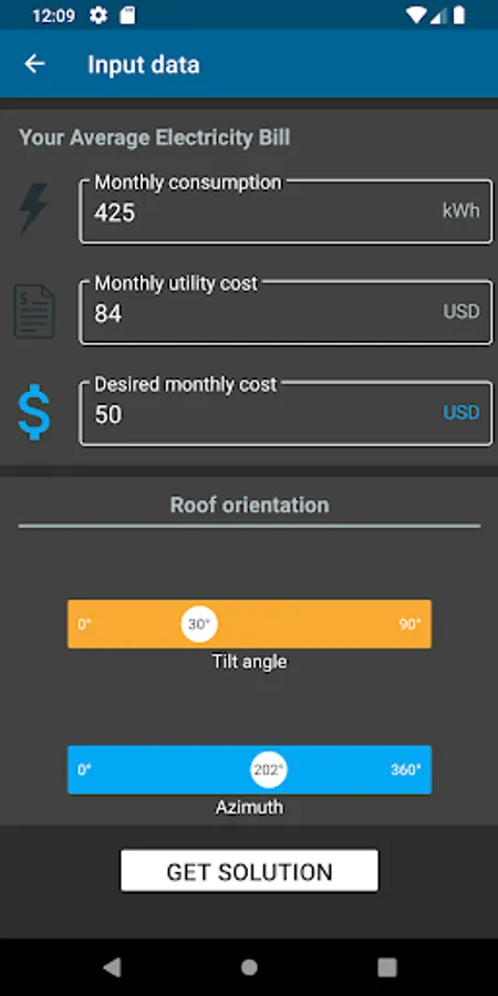 Solar Home is a user-friendly app and very simple to use. With Solar Home you will be able to find the most appropriate option for installing a PV system. You can check the solar needs based on your annual consumption and your desired monthly utility cost, based on the available roof area and based on the desired power of your PV system.