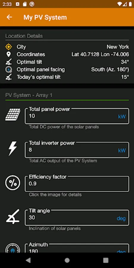 - Current most ideal tilt angle for your PV System if you have flexible solar panels