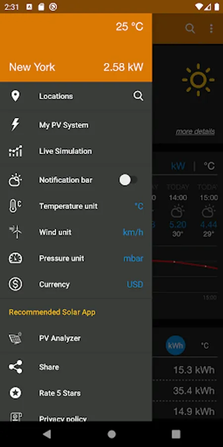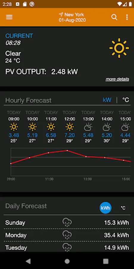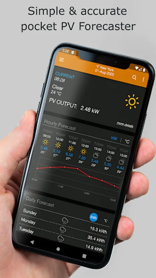 The app’s background is based on an expert system which combines sophisticated algorithms with statistical and physical models. Local accurate weather data are taken into account for achieving greater accuracy for the electricity generation.