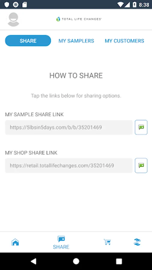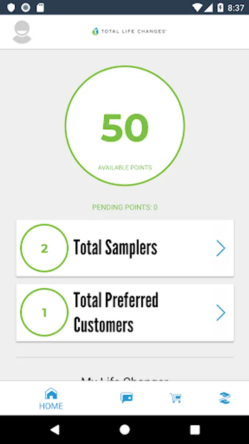 The Total Life Changes Preferred Customer app offers a unique dashboard for Preferred Customers to quickly view pending & total points earned from purchases made by customers using their unique retail link to their personal retail cart. The app shows a list of people that have been offered Iaso® Instant Detox Tea samples and a list of all current customer profiles. Easily offer Iaso® Instant Tea samples and allow others to shop from your personal retail cart using the Share utility. The app also allows you to go directly to your personal retail cart to make purchases. The fundamental goal of the Preferred Customer app is for current Preferred (Retail) Customers in Total Life Changes to share high-quality products and earn points from purchases made by new customers acquired using their unique link to their personal retail cart. This is an industry-first opportunity for retail customers to acquire points for free product purchases or upgrading to a Life Changer (Independent Business Owner) for free.