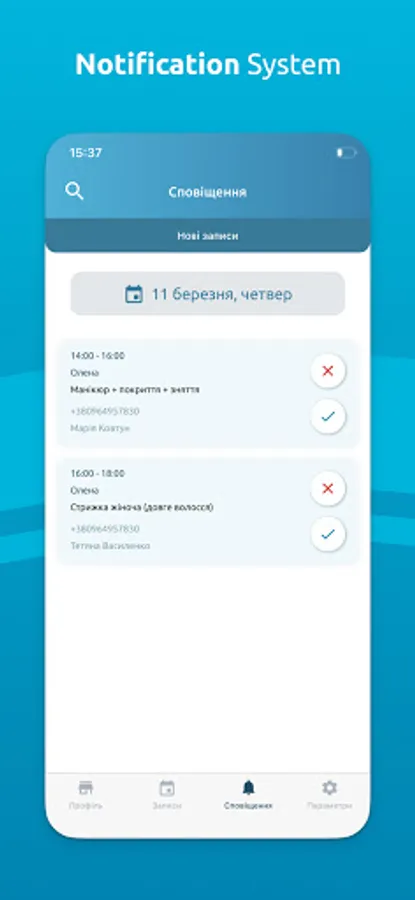 Choose the convenient way to confirm clients’ visits - automatically 24/7 or accept new requests in one tap.