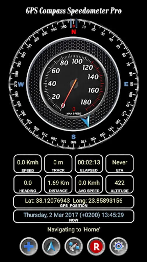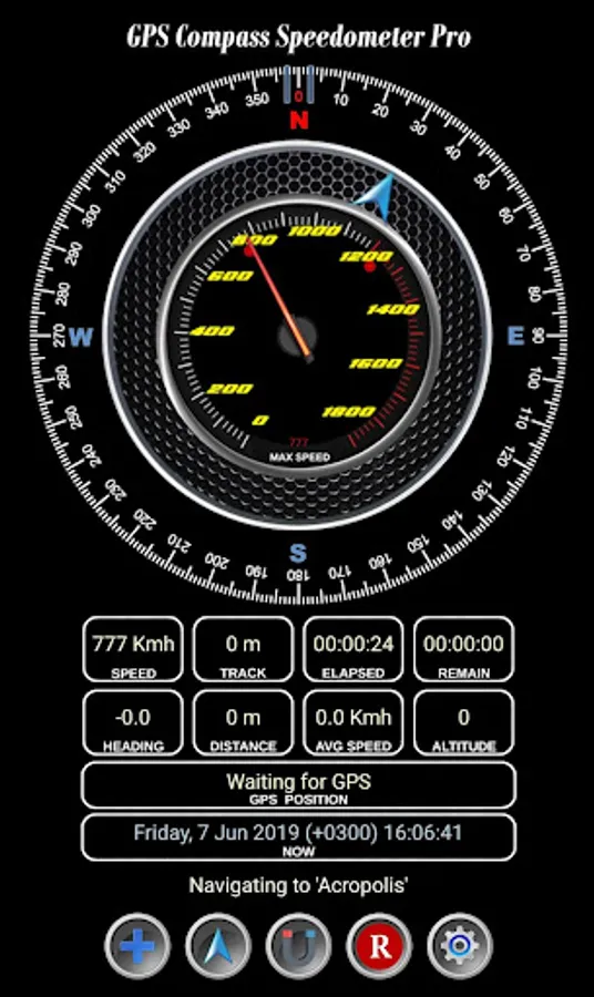 GPS Compass Speedometer Pro knows your heading, location, track distance, ETA etc. and can navigate you to saved waypoints easily. The power of this app is that you get almost all the functionality and information in one screen. This makes it easy to use while driving for example. Save a waypoint just by using one tap and rename it later in your convenience.