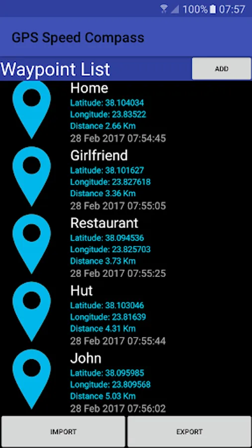 NOTE: Import and export is through waypoints.txt in the following folder,