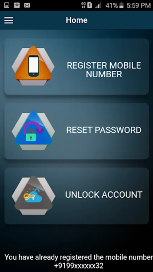 This app will be used to register mobile number, reset user account password and unlock user account.