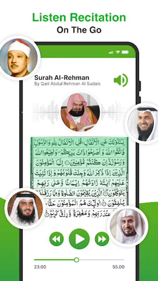 القران الكريم audio: Audio mp3 recitations of the Coran mp3 in Arabic, allowing users to listen to the holy Quran pak on the go. Quraan recitation: Reciting the Coran mp3, featuring various reciters and styles to choose from.