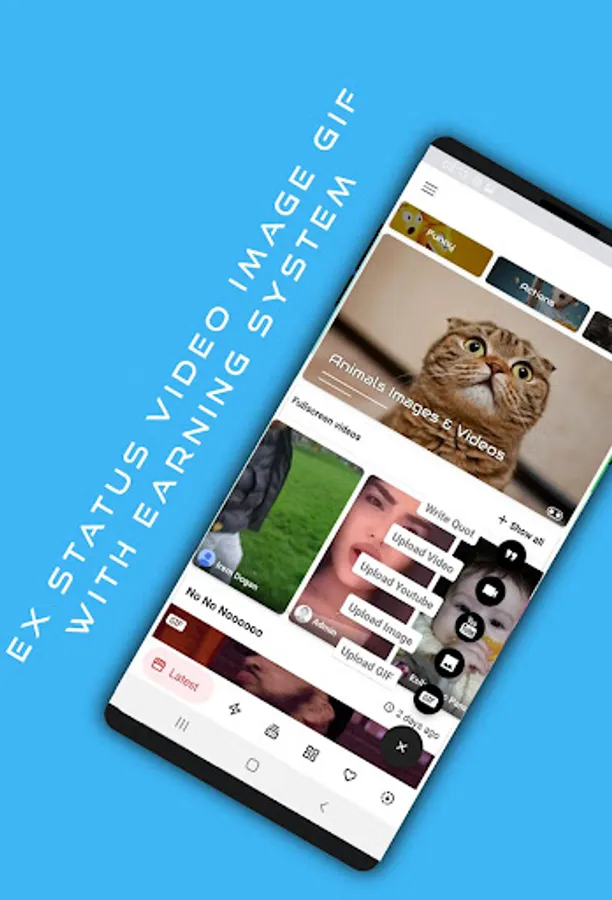Ex Status Video Image as GIF Application. We help you to generate additional income in many areas. Our application is a social sharing application. Our valued users, like you, share Video, Image Gif and Status. He also makes money from his posts.