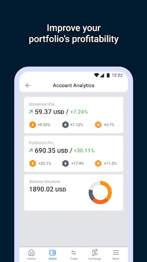 - Balance structure displays the total balance of your wallet, as well as each currency's ratio.