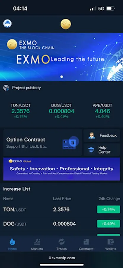 The EXMO international digital asset trading service platform focuses on digital asset trading services, providing professional trading functions, smart trading and smart matching, multi-party entrusted orders, convenient transactions, fund entrustment, and easy account management. At the same time, contact and cooperate with large and small digital currency exchanges in the industry, exchange information, and achieve a common concept of digital assets covering the whole world.