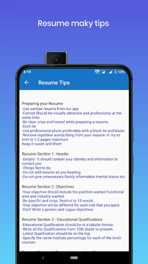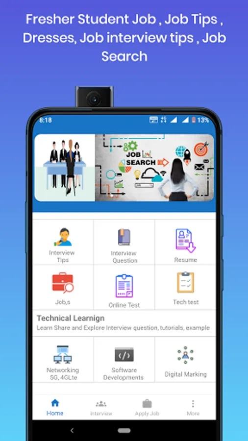Fresher job tips free app has offline/ online Collection information, This app has been providing the fresher job tips like Dresses Tips, Interview Tips, Online test, Resume Tips, and apply Online for job In many job Portal, Fresher job Tips