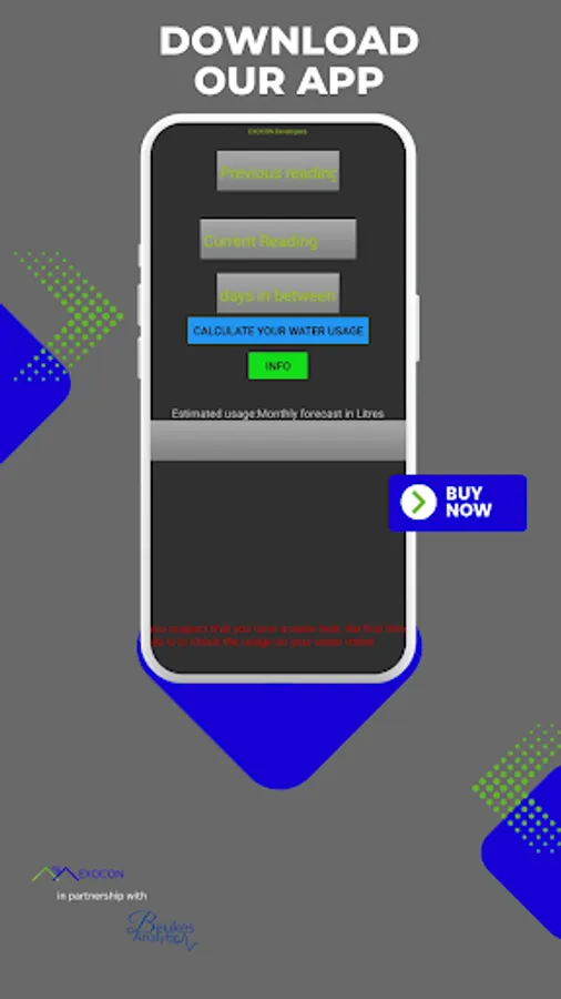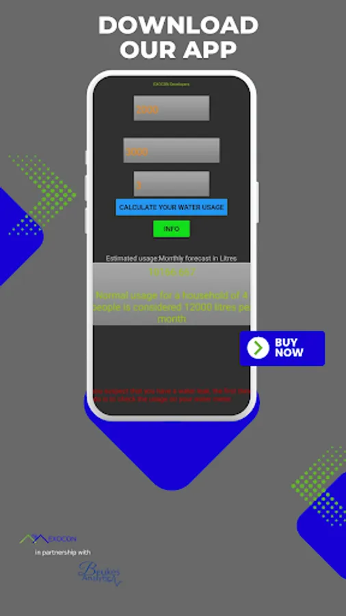 Water bills can be a cause of stress to many. This water management app helps you to calculate your water usage and determine whether your water use is below average, normal, or high for the average family of 4. Knowing whether your use is high can help you decide whether it is necessary to further investigate the possibility of a leak. By taking regular readings and using this app, you can take control of your water consumption.