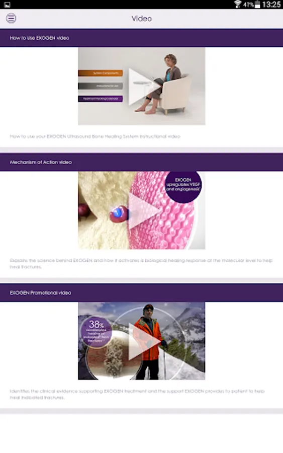 The EXOGEN CONNECTS patient smartphone app provides beneficial tools and information for patients to help them use their EXOGEN therapy consistently as prescribed by their clinician.