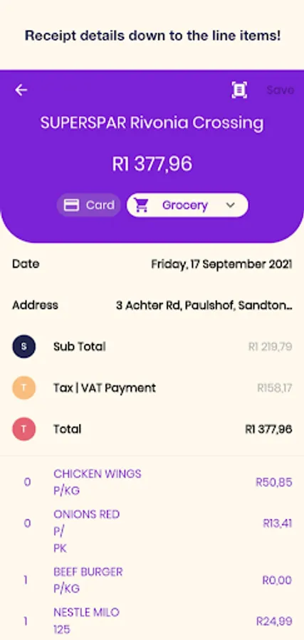 See how much you are spending on each receipt line item.