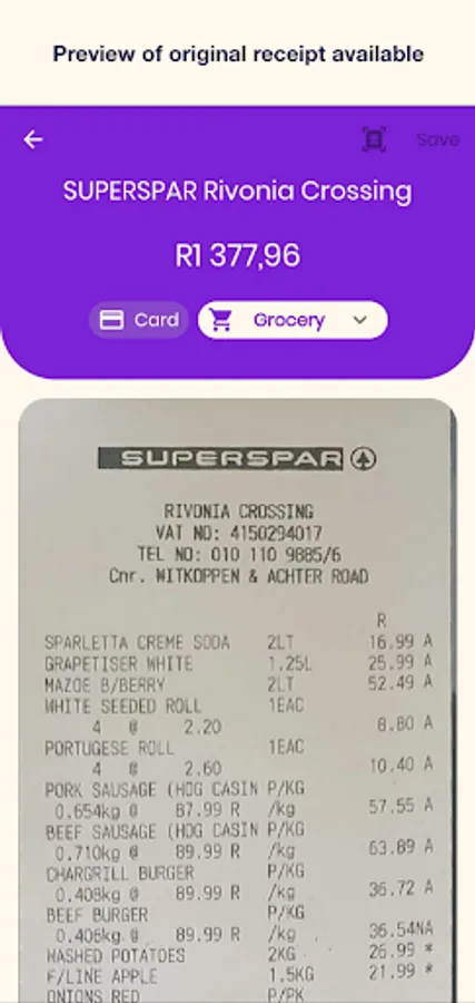 Preview your scanned receipt.