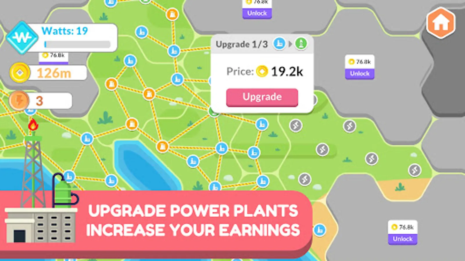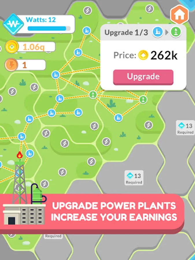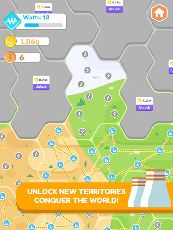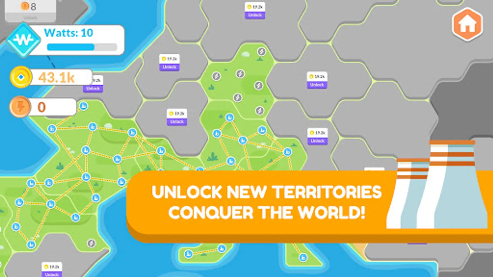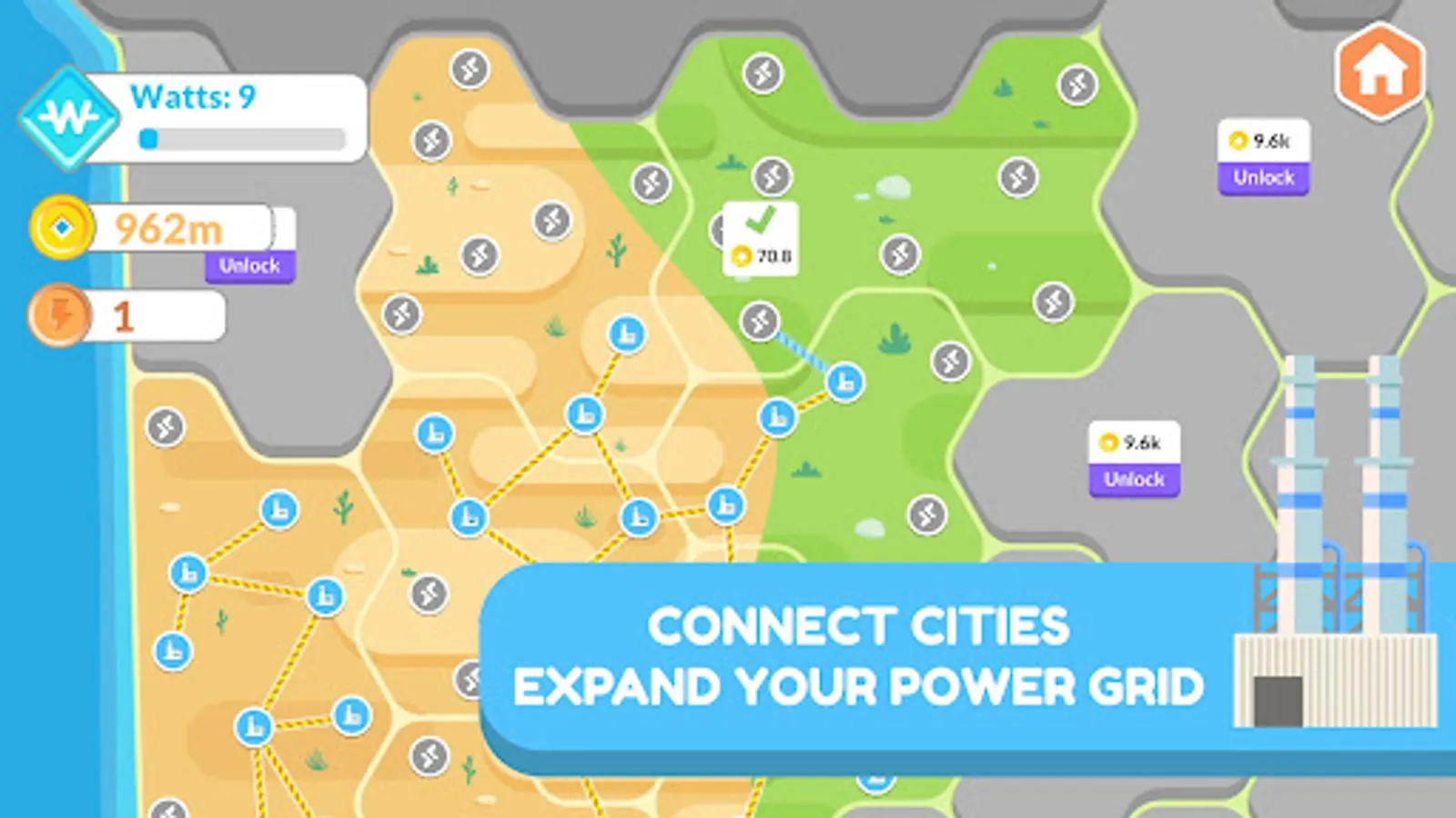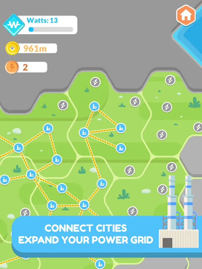 In Electric City Lines, you'll have to manage your coins wisely; make sure you have enough Watts to expand and keep an eye on those Sparks; they'll make or break your campaign. And don't forget to upgrade your power plants! You won't go far only with Coal Plants. Once you can afford it, upgrade them to Gas Plants or even take advantage of the energy powerhouse that Nuclear can offer you.