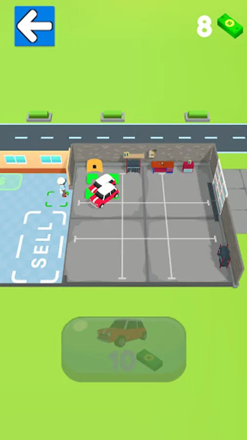 Merge cars to get the next level car and sell it profitably to your customers. With the money earned, upgrade your car dealership and buy new places for cars.