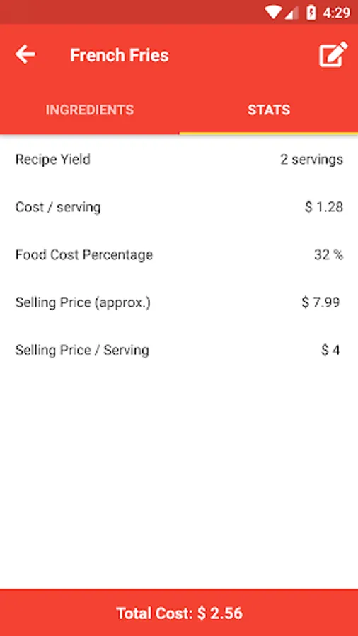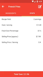 Easy to use recipe cost calculator.