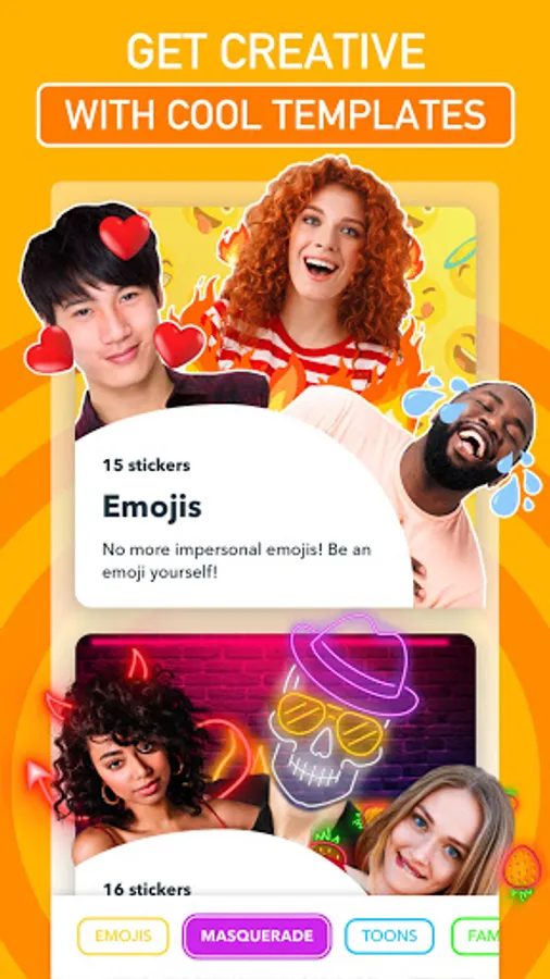 - Make custom stickers from your or your friends’ photos.
