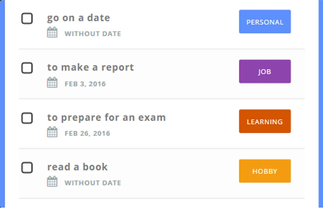 Simple todo list - convenient scheduler of daily affairs. Anything superfluous - opportunity to add and delete tasks, to choose the necessary category for tasks, to define time necessary for its end. Easy and pleasant interface.