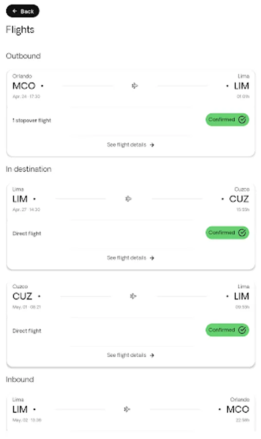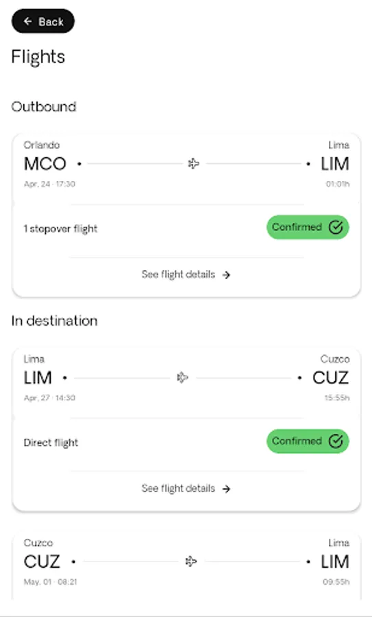 • From meeting points to transfer times and internal flights