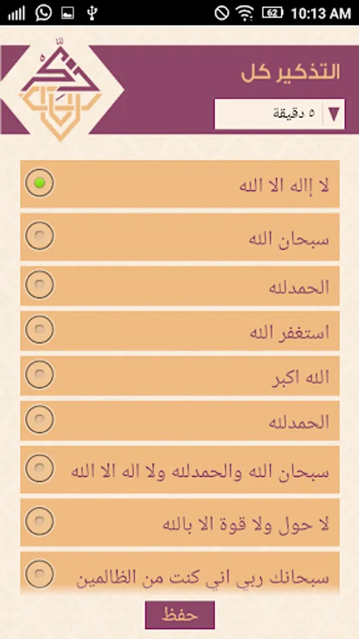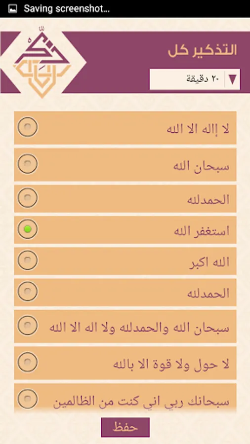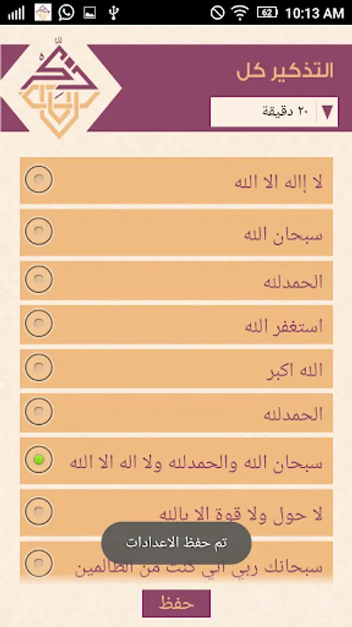 ويكرر لك الذكر المختار كل فترة بحسب تفضيلك ورغبتك..