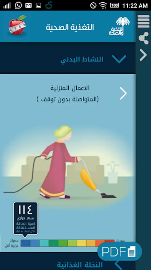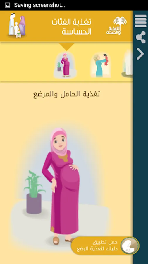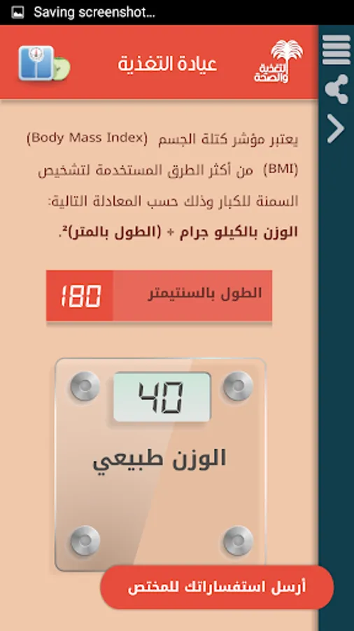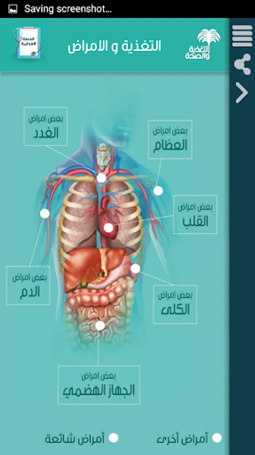 التطبيق يشتمل على معلومات ونصائح غذائية ذات علاقة بصحة المريض وأفراد المجتمع.