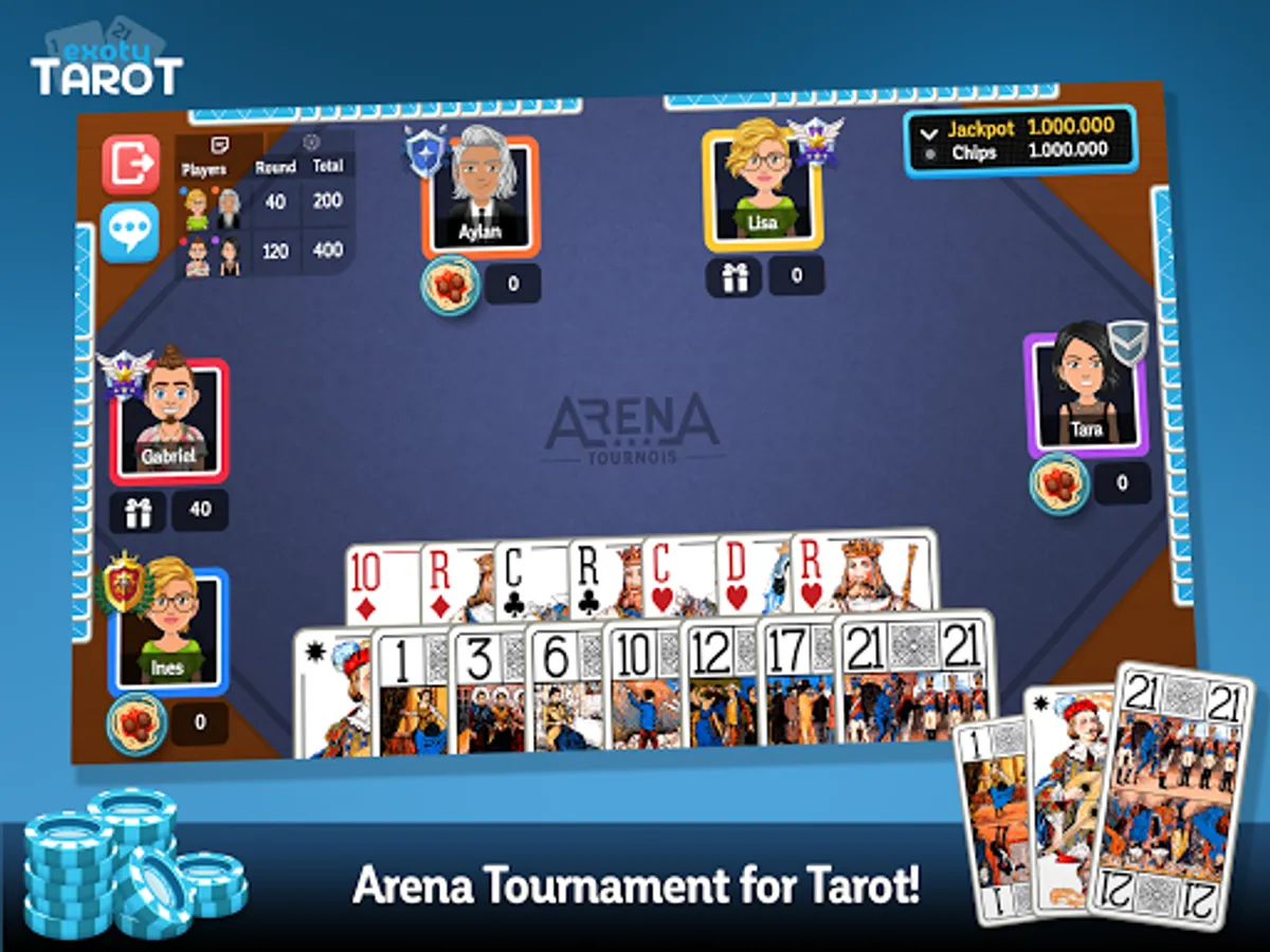 Every day, Exoty.com offers thousands of French tarot players to compete for free in Leagues or Arena tournaments! If you are looking for astrology card games this is not the right free online card game !