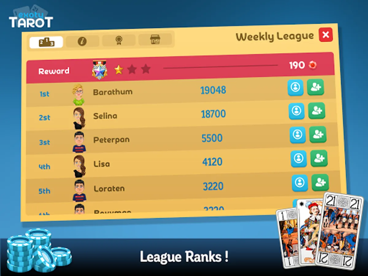 🏆 LEAGUES: BECOME THE BEST TAROT PLAYER IN FRANCE!
