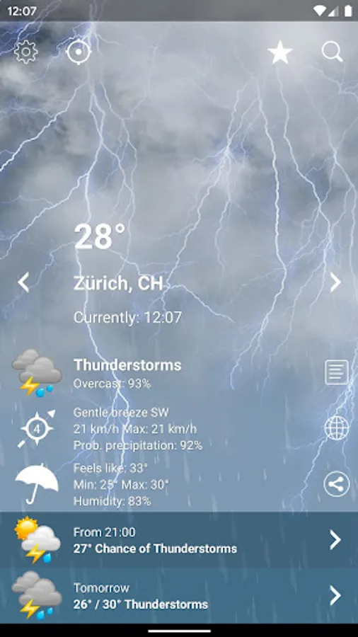An easy-to-use app to stay informed of weather conditions in Switzerland and around the world.