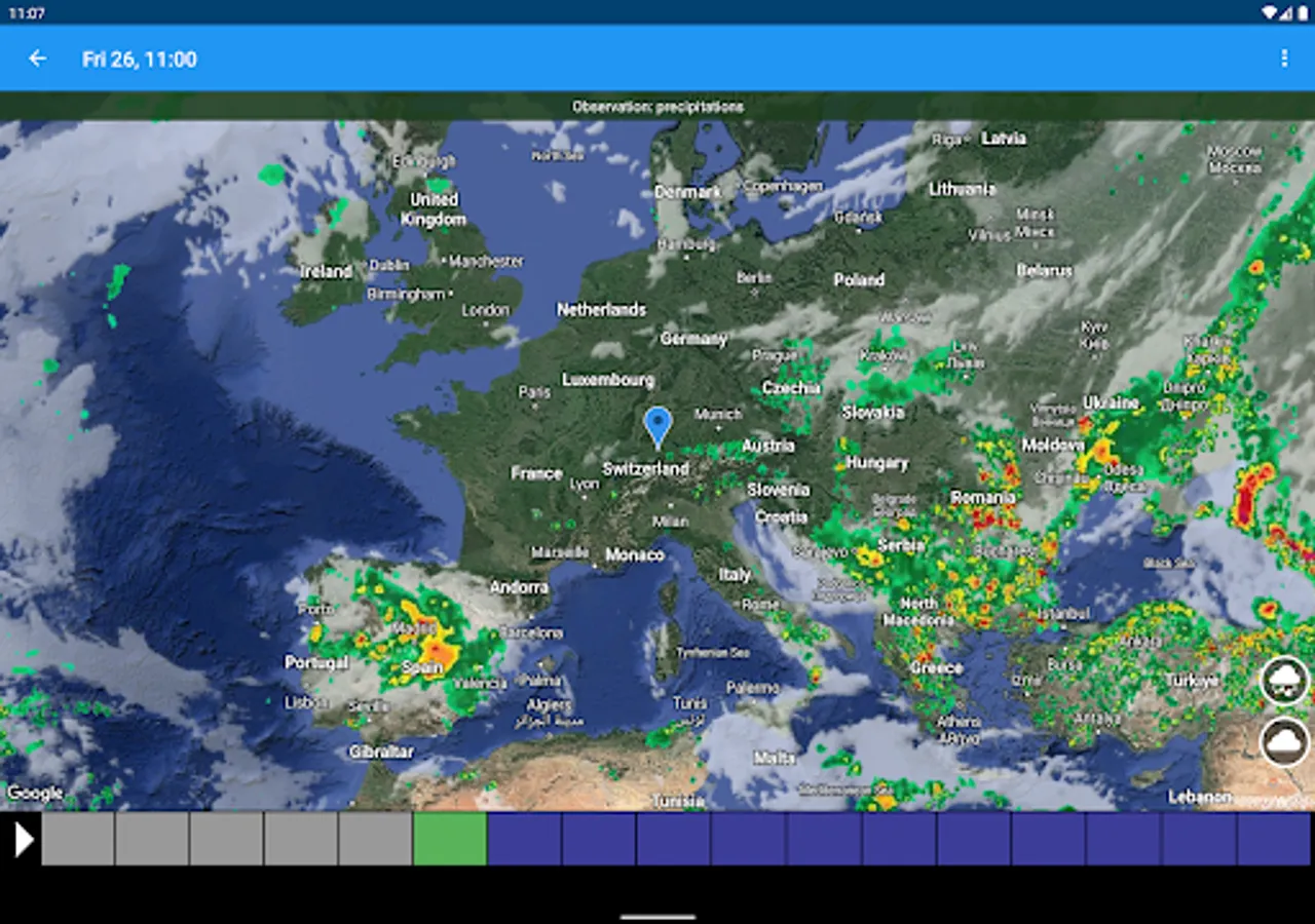 - Satellite and weather radar map animations
