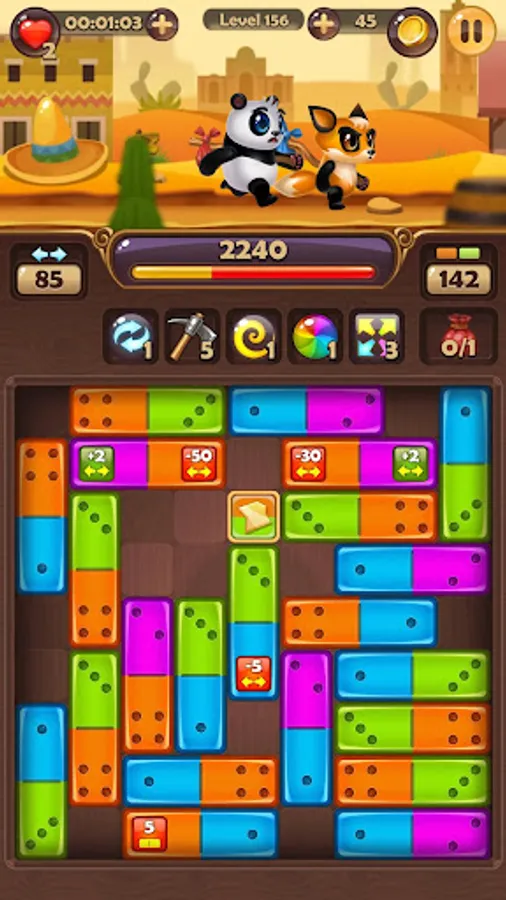 Join Pandamino and Foxy on their trip around the world, you will have to solve challenges,explore many places to fill your bag of lost dominoes belonging to your family.