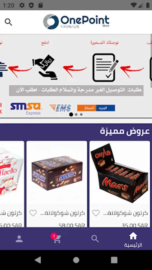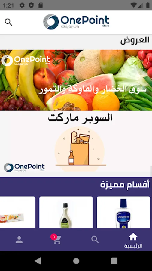 One Point store is an electronic hypermarket that offers supermarket products, flaps, vegetables, fruits, clothes, electronic devices and home needs.