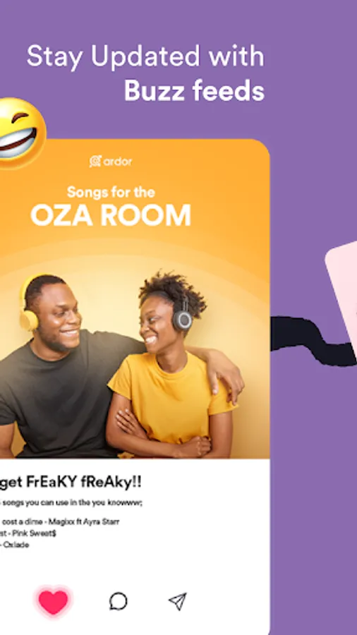 Gives you access to interesting and juicy gist from Ardor. Share your love stories and experiences anonymously or not via feeds@ardor.africa