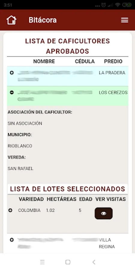 The innovation support professional may also register the transfer, training and group meetings through the APP and, in addition, will have available relevant support material for the improvement of the quality of life, progress and welfare of the coffee producer.