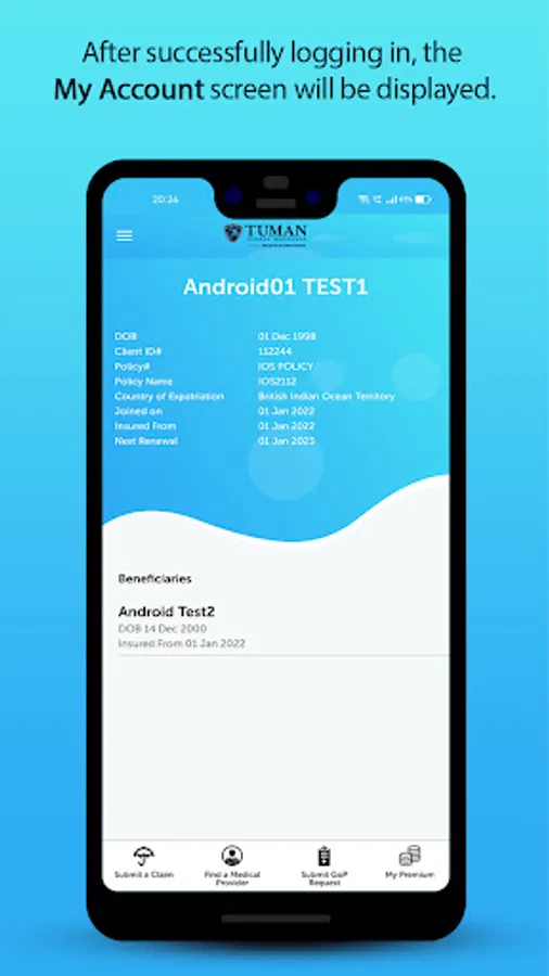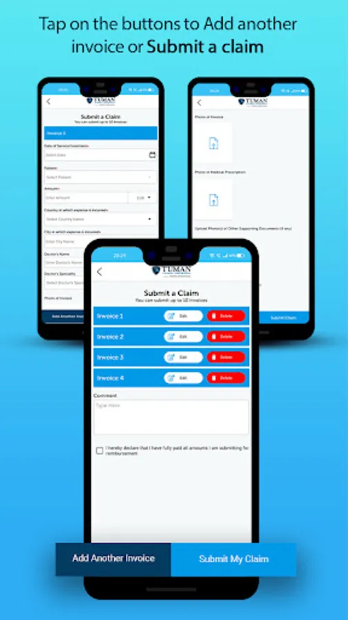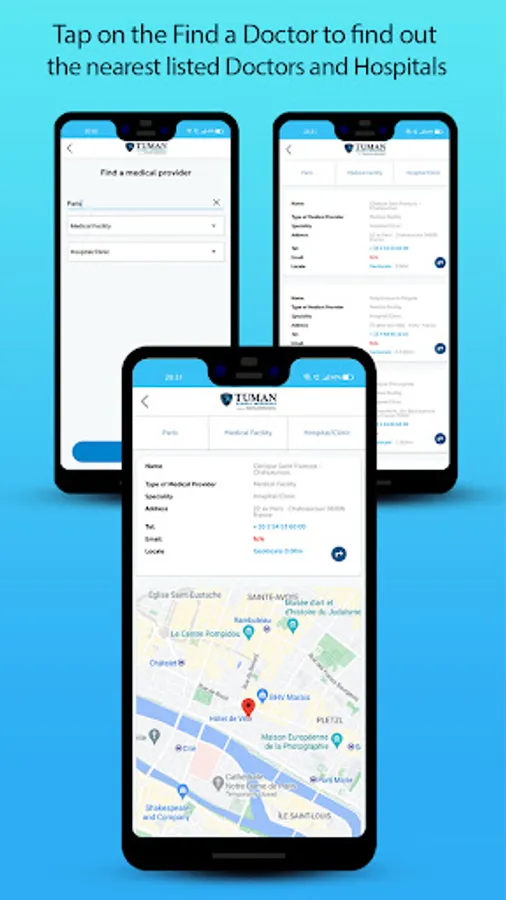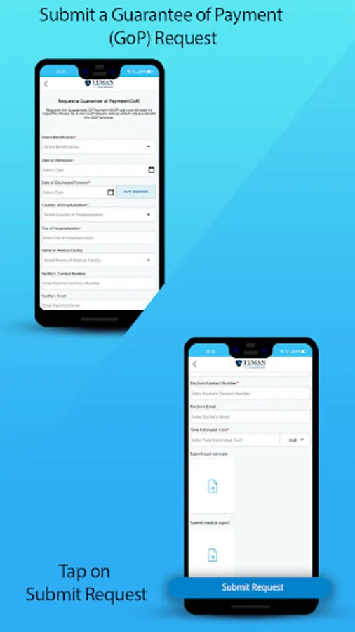 Tuman Health provides you with access to your medical insurance policy. The main purpose of this application is to enable insured members to submit claims, request guarantees of payment, and find a hospital.