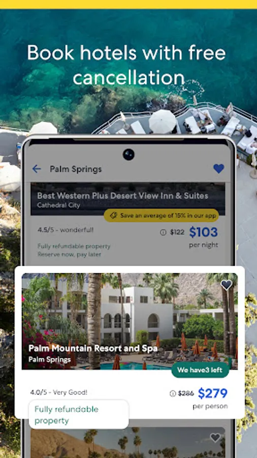 The Expedia app is an all-in-one travel companion where you can plan, book and manage your whole trip, plus earn rewards, in one place. Members instantly get discounted Member Prices on flights, hotels, cruises, car rentals, and activities. With our new rewards program, One Key™, you can earn, combine and use OneKeyCash™ rewards across Expedia, Hotels.com, and Vrbo. Dreaming of a beach vacation in Florida? Or a romantic getaway in Paris? Get more out of any trip with the Expedia app.