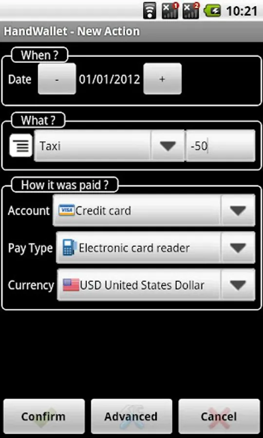 In order to use this app you should install first HandWallet - a free professional expense manager that helps you to control your expense, accounts, bills and budget.