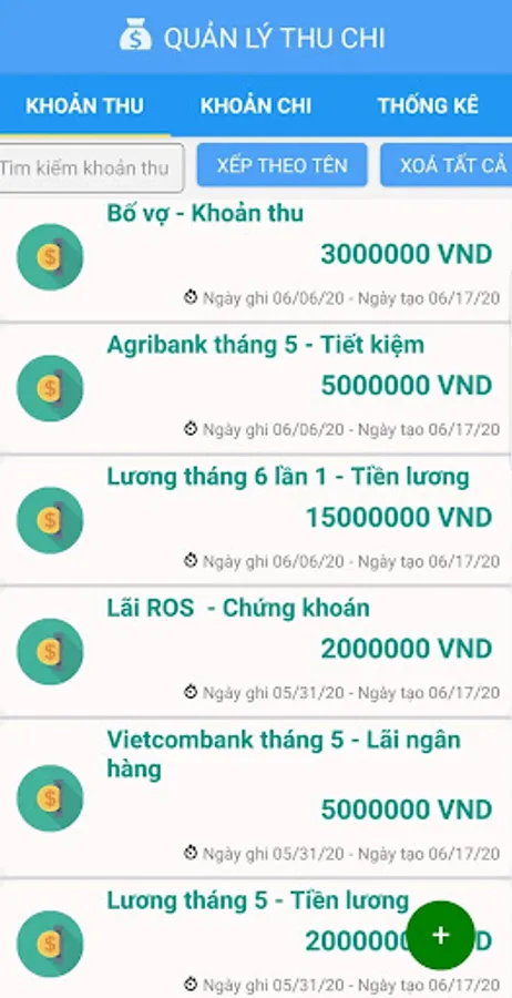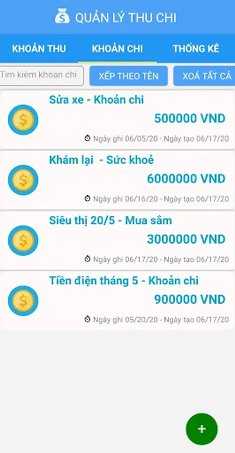 + Notes of revenue and expenditure: helps you to record separate revenues and expenditures according to each item and each different item.