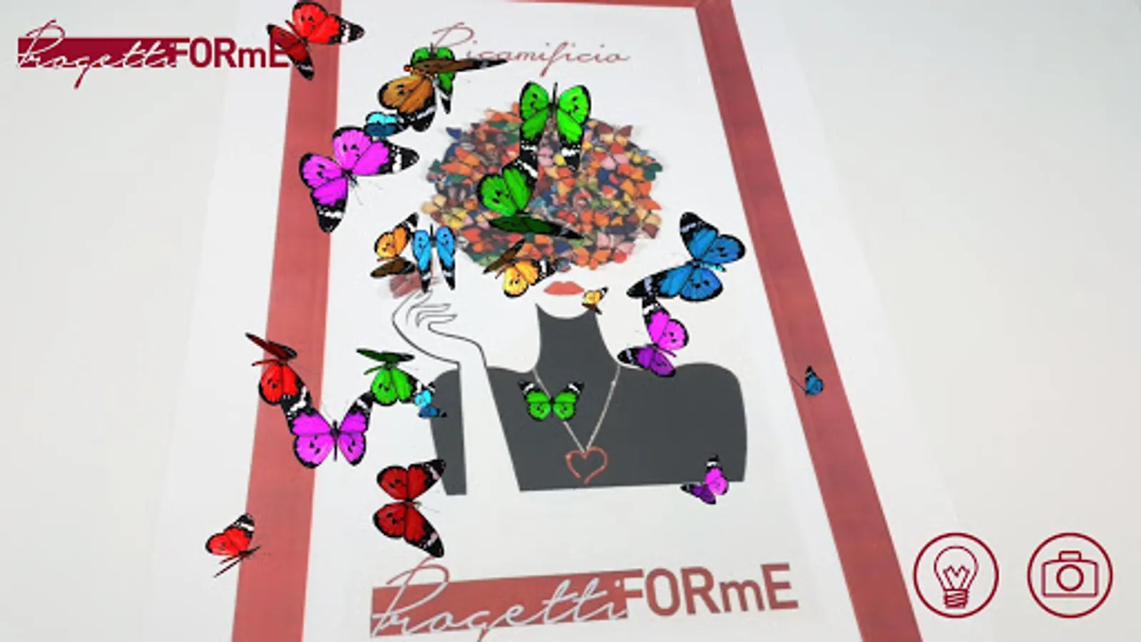 The garment, alredy enhanced by embroidery, transmits its message, according to the designer's idea, also with the language of augmented reality. The embroidered design comes alive, taking off from the surface of the fabric, watching it through the smartphone.